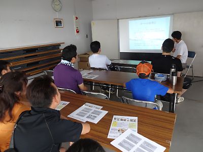 佐鳴湖で活動するボート部の保護者を対象に、乗艇体験会を開催しています。第2回は10名弱の参加でしたが、、講座と実技を行いました。